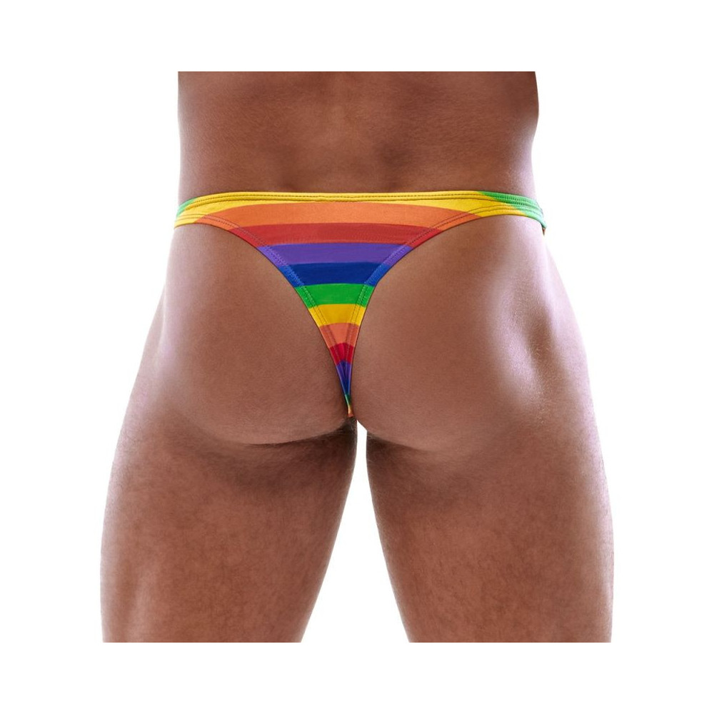 Riostring von Svenjoyment mit bunten Streifen in Regenbogenfarben. Rundum weich und elastisch für höchsten Tragekomfort und uneingeschränkte Bewegungsfreiheit.