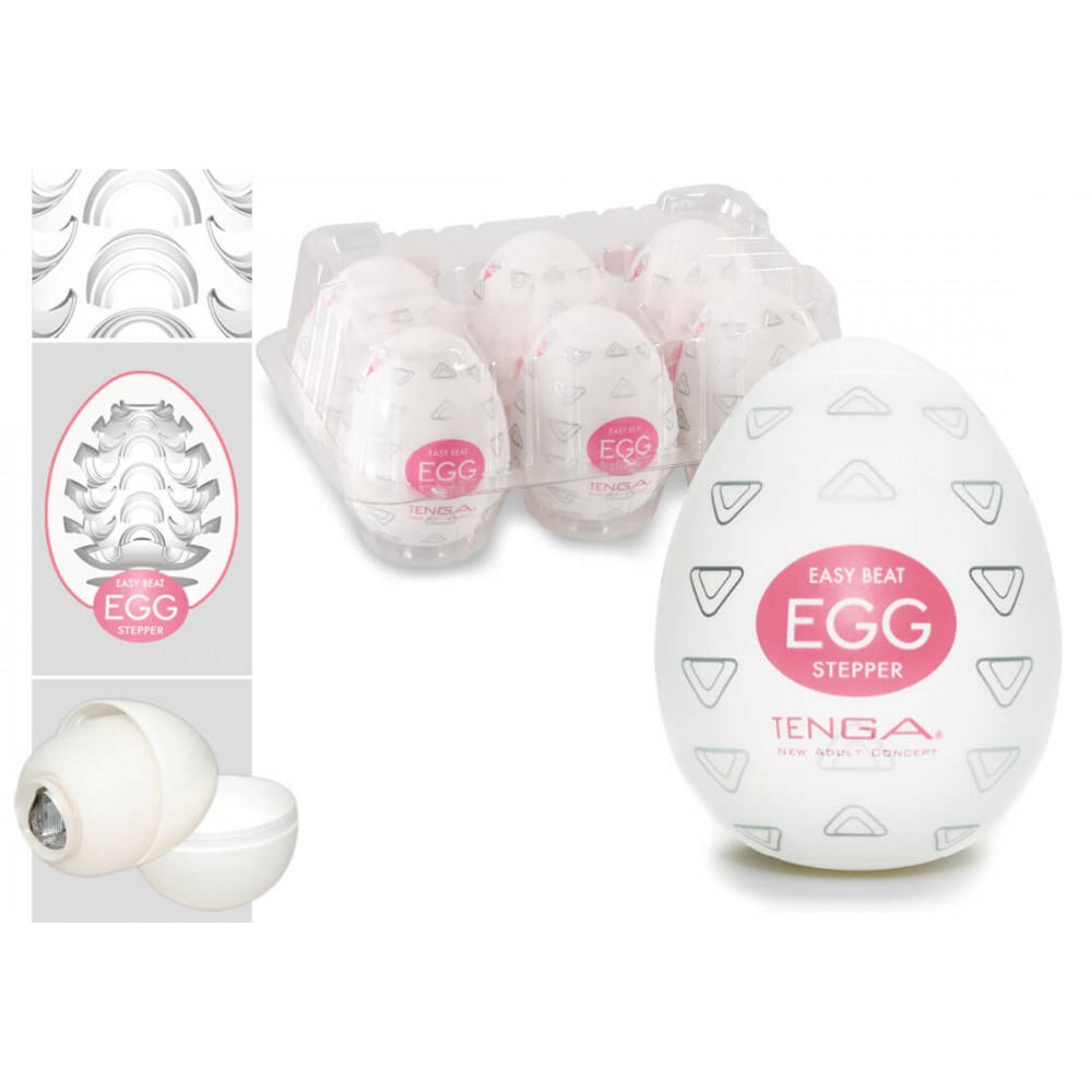 Genießen Sie die phänomenalen Gefühle von den TENGA EGG Stepper Einmal-Masturbatoren in Eiform. Diese kleinen Schönheiten sind innen mit unterschiedlichen Reizrillen ausgestattet für ekstatische Lustgefühle beim Hineingleiten. 7 cm, Ø dehnbar, geeignet für jede Penisgröße. 6 Stück im Karton. Inklusive Gleitmittel.