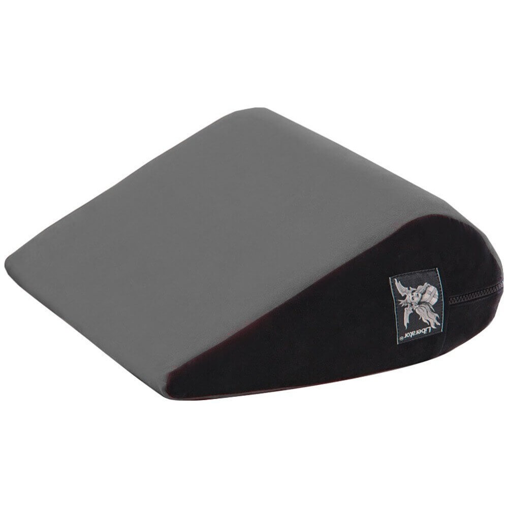 Keilförmiges, schwarzes abgerundetes Kissen. Maße: ca. B 48 x L 35,5 x H 18 cm.
