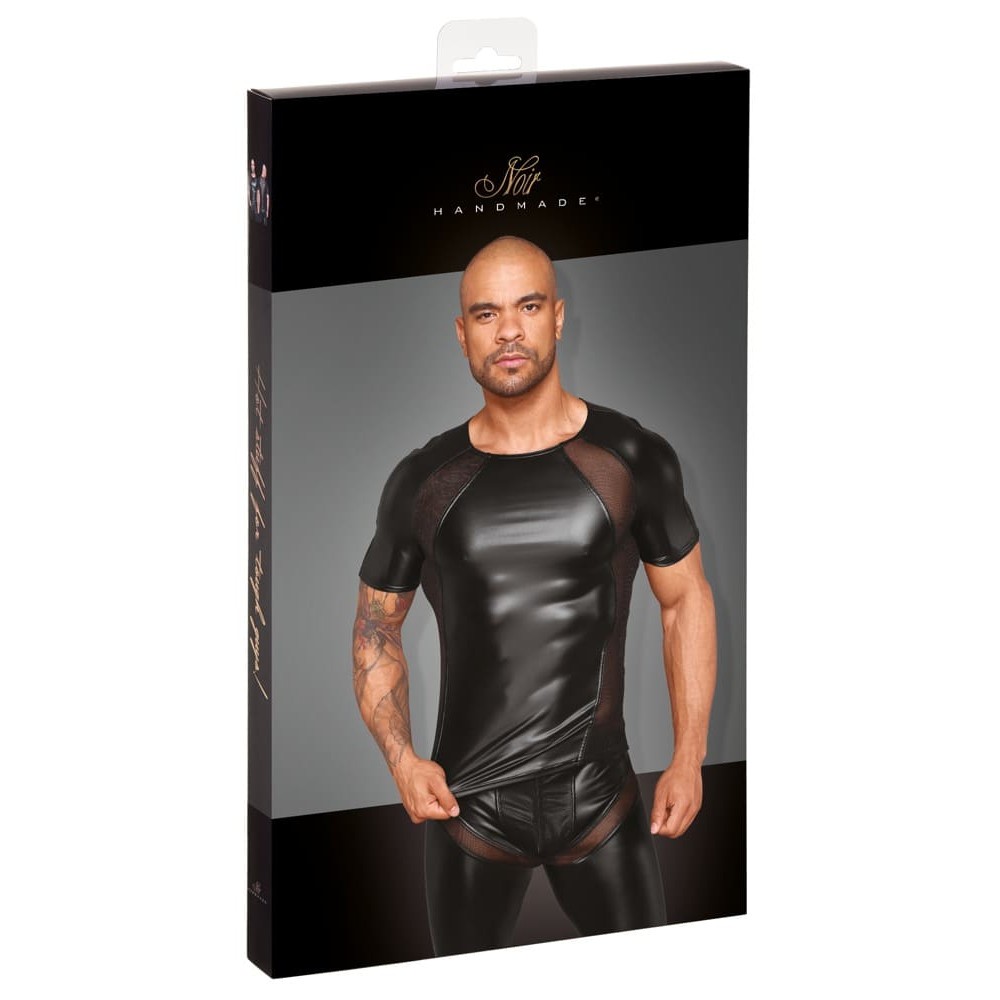 Körperbetontes Shirt mit kurzen Armen und Rundhalsausschnitt. Der Netzeinsatz im Rücken betont die Konturen der Wirbelsäule, während die seitlichen Netzeinsätze vorne die Brust betonen.
